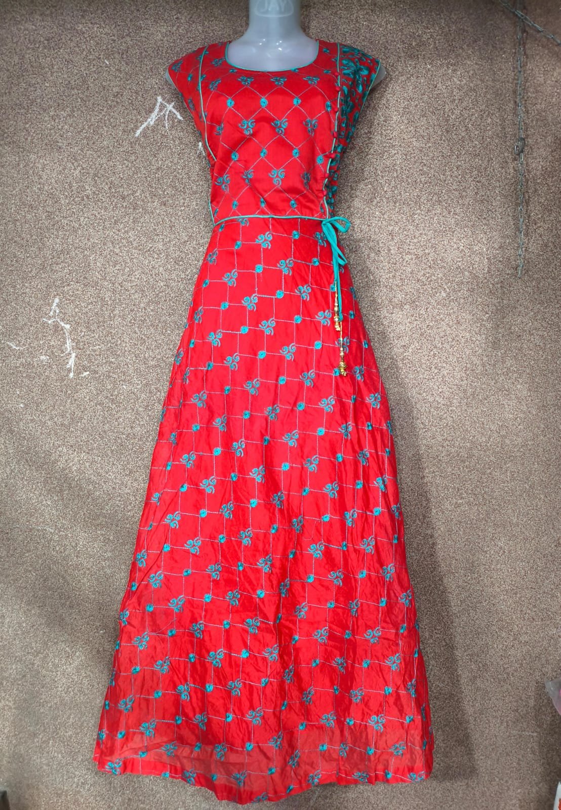 Elevate your ethnic wardrobe with this vibrant Red One Piece Gown, crafted in soft cotton fabric and beautifully adorned with fine thread work. A stylish yet comfortable piece perfect for festive wear, casual gatherings, or everyday elegance โ now available at a special price!