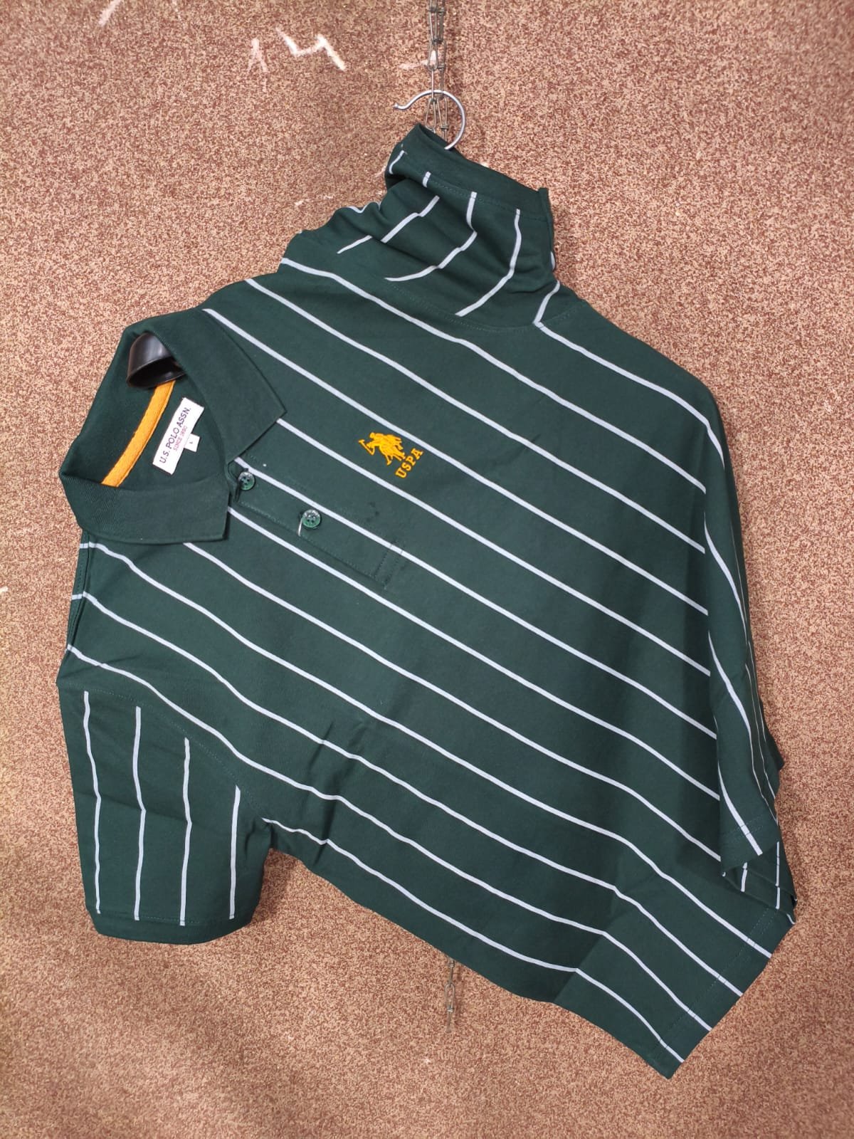 Upgrade your wardrobe with this authentic U.S. Polo branded T-Shirt, featuring a classic striped design. Crafted from premium-quality fabric, it offers both comfort and style for a versatile, everyday look. Available at a special discounted price โ grab yours now!